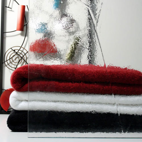 Obscure glass comes only in 3/8" thickness and is more expensive than clear glass (please call for pricing). Below are pictures that show the different patterns available in obscure glass (only the outside is patterned, the inside is smooth).