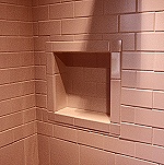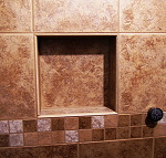 | In this example (right), all of the grout lines, line up and the cubby looks great. The tile installer on this job was Dan Jameson from the Bangor area. Dan is out on his own now, but trained with Bob Goulet at Keniston Tile. If you are doing your own tiling and want to know how to do it right, I'd suggest taking a trip to Keniston Tile in Bangor and talking to Bob. Of Course he might be a little reluctant to share his time or tips with those who have no intention of buying anything. But if you are one of his customers, he will bend over backwards to help make your job perfect. | |||||||||||